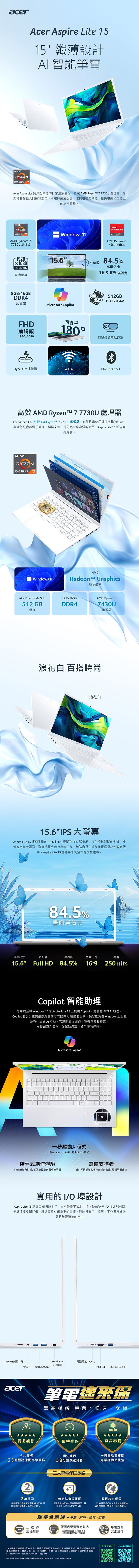 | 【商品名稱或型號】 | 【Acer 宏碁】Aspire Lite AL15-42P-R43M 15.6吋文書效能筆電 |