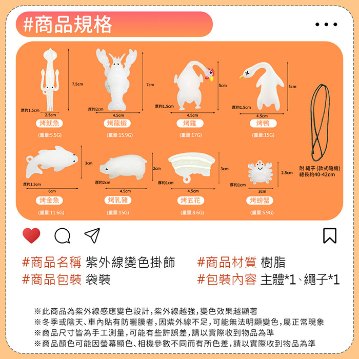 | 【商品名稱】 | 【全家福】變色動物吊飾8入組-樹脂款 |