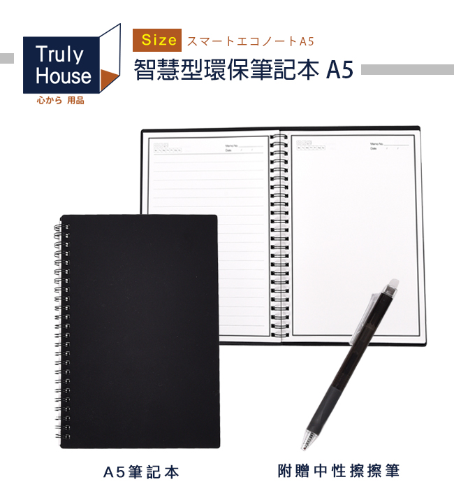 | 商品名稱 | 【Truly House】智慧型環保筆記本 A5 贈可擦筆 |