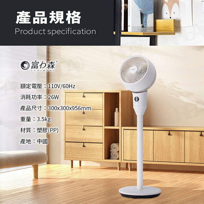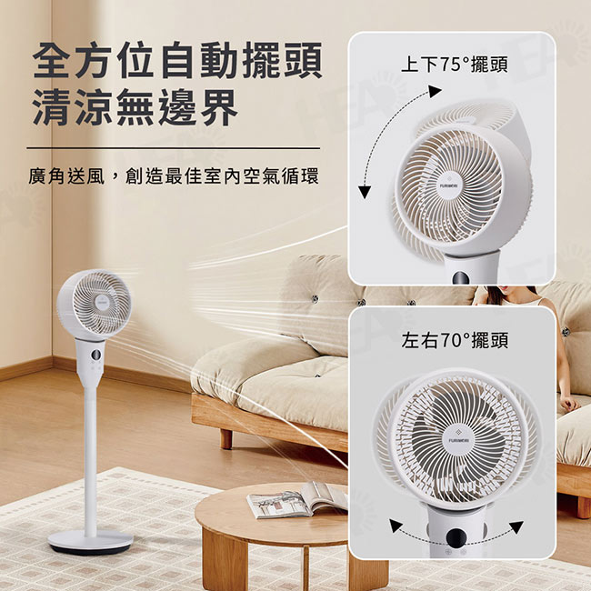 8段風速,上下75度/左右70度自動擺頭