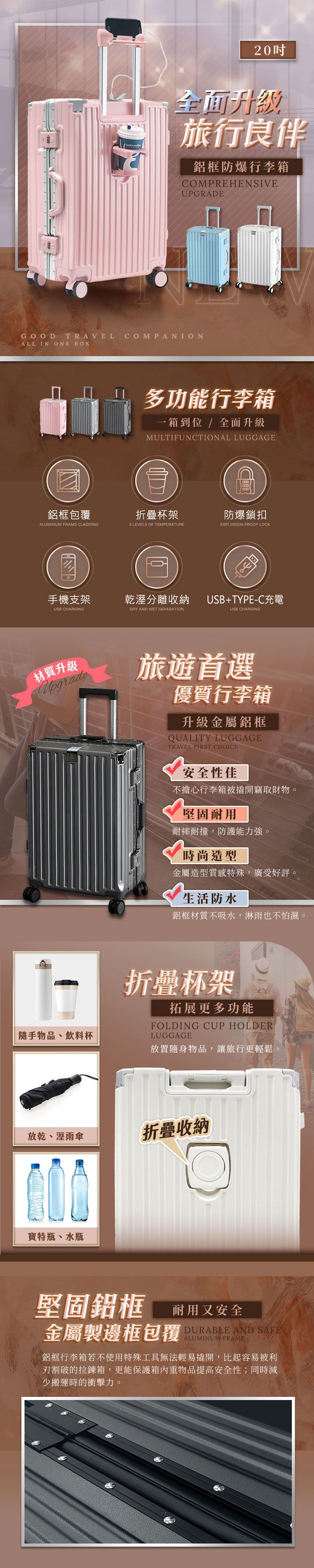 | 【商品名稱】 | 【FJ】"全面升級"多功能20吋鋁框防爆登機箱(KA20A) - 5色可選 |