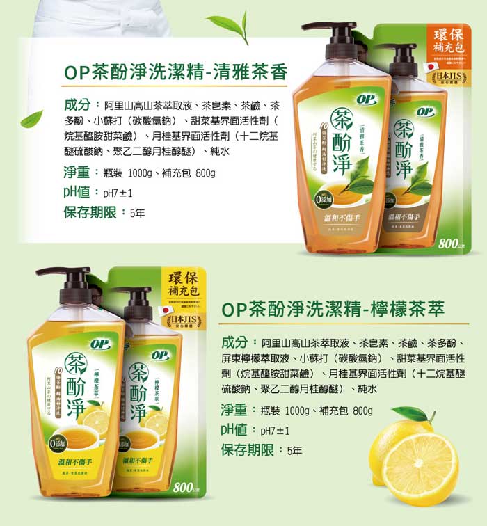 | 商品名稱 | 【OP】茶酚淨洗潔精(洗碗精)-清雅茶香 1000gX6瓶 |