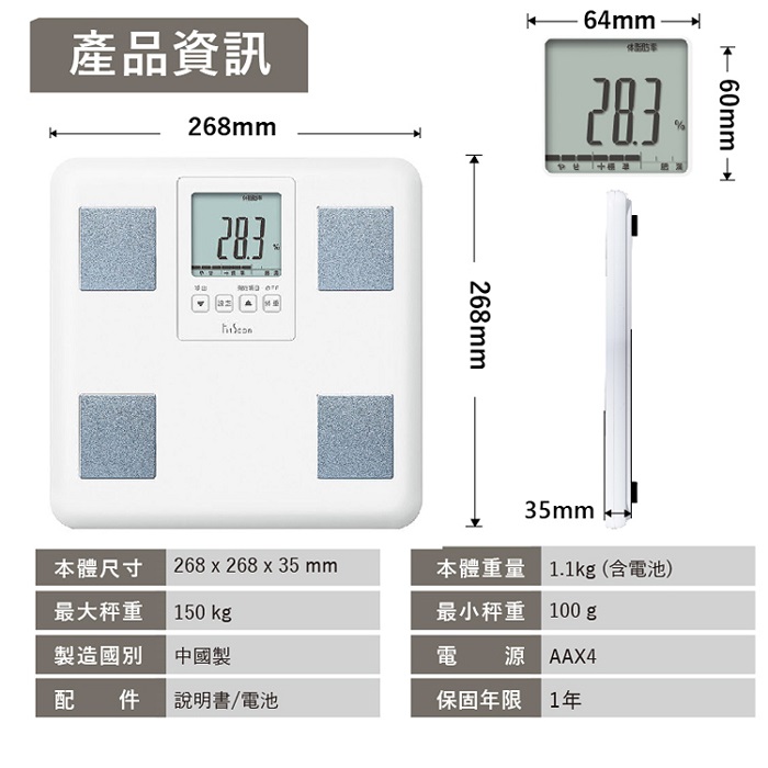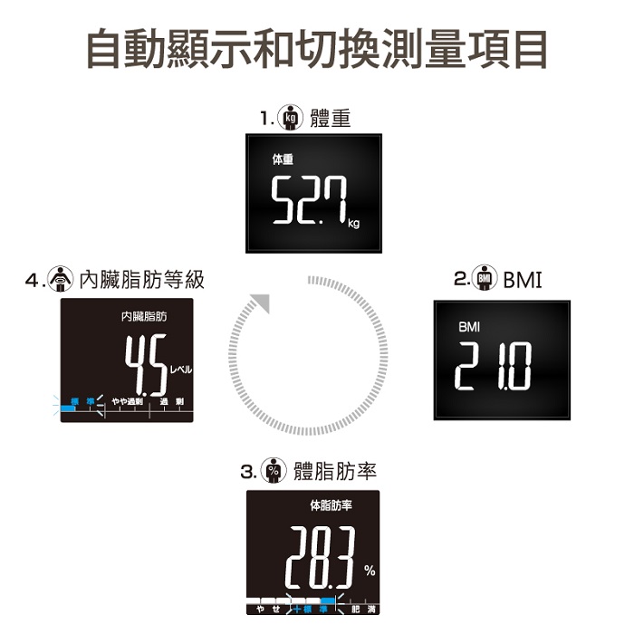 ★ 可量測四大數值:體重/體脂肪率/內臟/ BMI