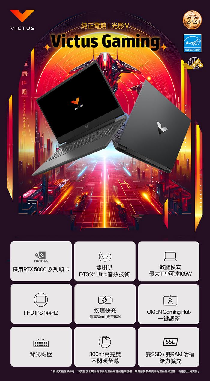 | 【商品名稱或型號】 | 【HP 惠普】Victus Gaming 15-fa2255TX 15.6吋電競筆電 黑騎士 |