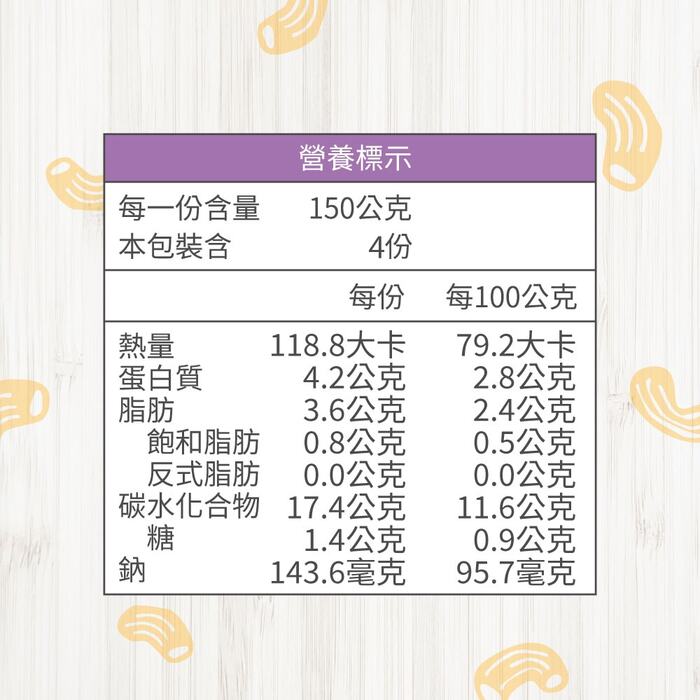 甜甜蘋果香與高纖維紫地瓜,搭配大小好入口的彎管麵,