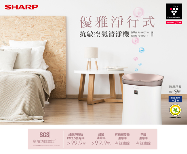 【SHARP夏普】9坪抗敏空氣清淨機(香草白) FU-H40T-W