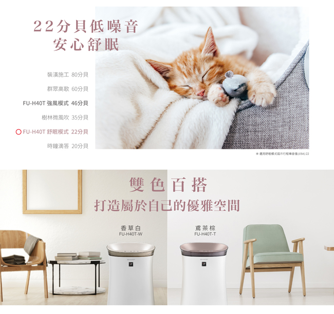 噪音(dBA):強/46,中/42,舒眠*/22~27(*根據污染物自動切換)