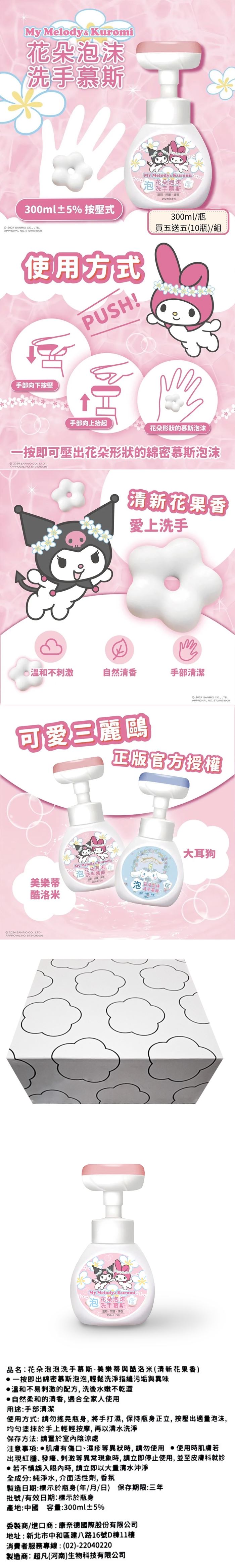 | 商品名稱 | 花朵泡泡洗手慕斯-美樂蒂與酷洛米(清新花果香)*10瓶 |