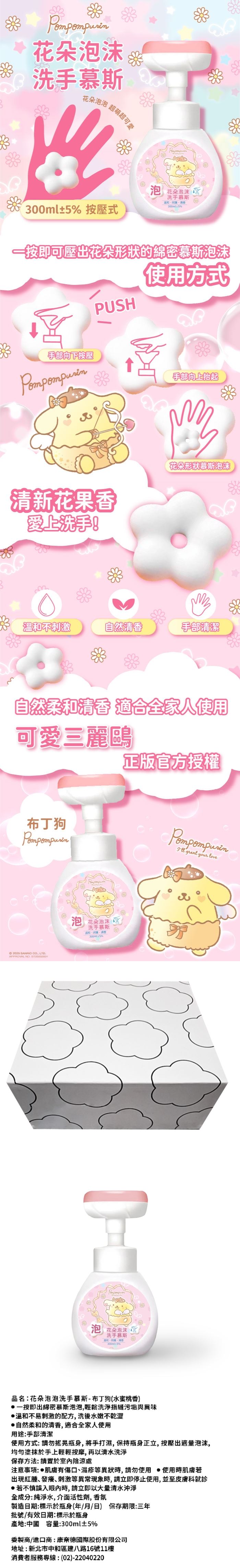 | 商品名稱 | 花朵泡泡洗手慕斯-布丁狗(水蜜桃香)*10瓶 |