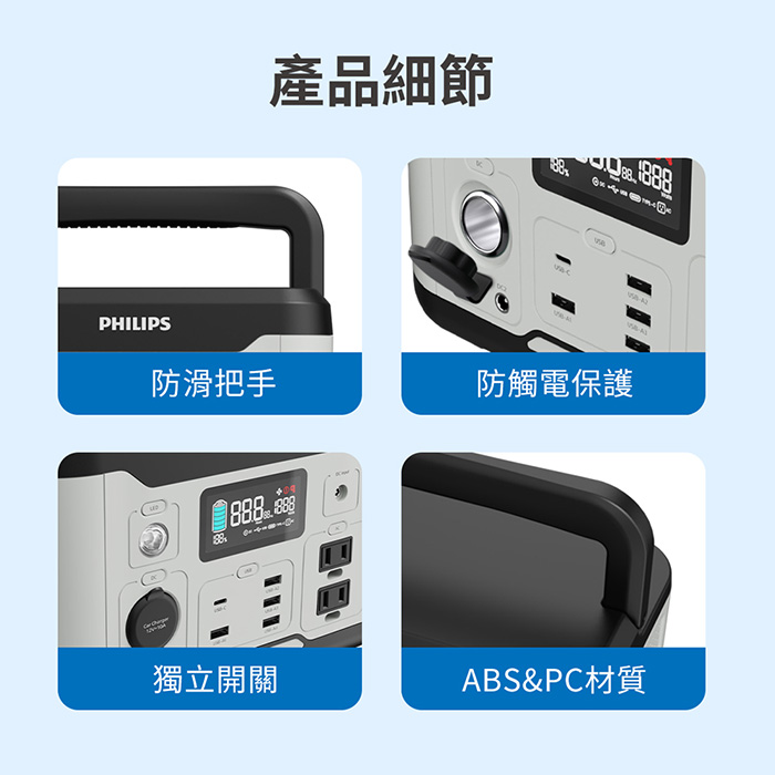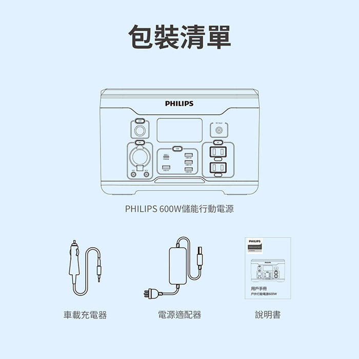 | 【商品名稱或型號】 | 【PHILIPS】600W 攜帶式儲能行動電源DLP8093C (露營/戶外行動電源/UPS不斷電) |