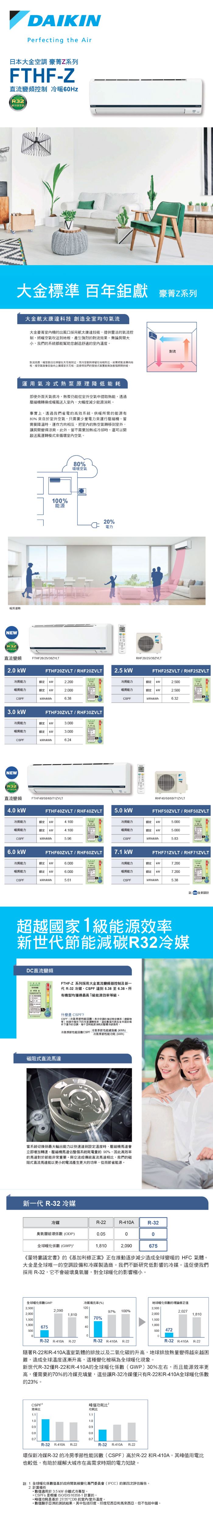 | 商品名稱 | DAIKIN 大金 豪菁Z系列4-6坪變頻冷暖分離式冷氣(RHF30ZVLT/FTHF30ZVLT) |