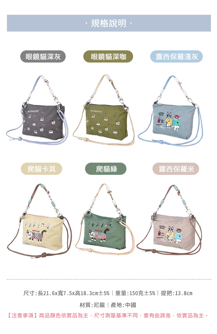 | 【商品名稱】 | 【Kusuguru Japan】日本眼鏡貓 刺繡貓咪斜背包 - 6款可選 |