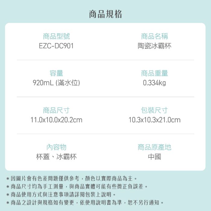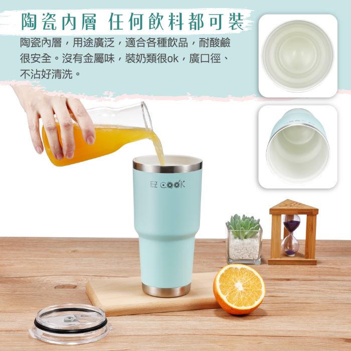 - 陶瓷內層,耐酸鹼,適用各種飲品,使用不受限沒有金屬味,不沾好清洗。