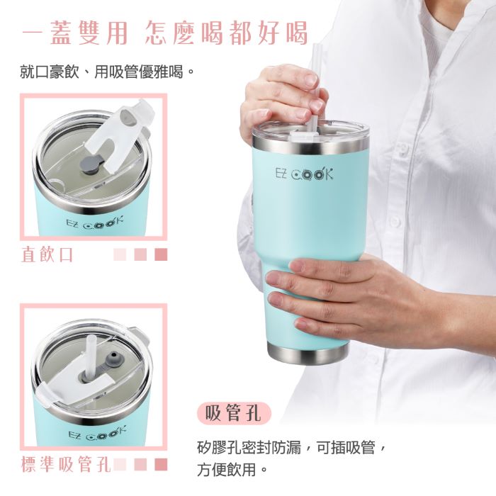 - 防潑灑杯蓋,就口直飲、吸管插口雙用。