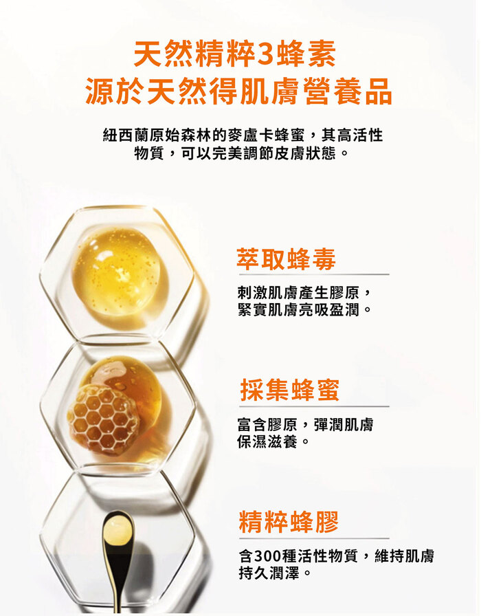 主打 蜂膠✔️蜂毒✔️蜂蜜 來重塑緊致蜜光肌