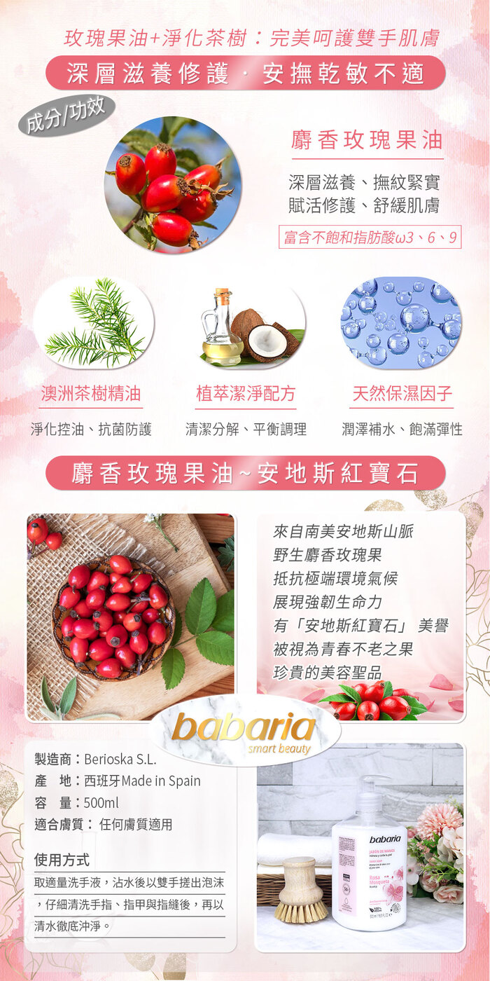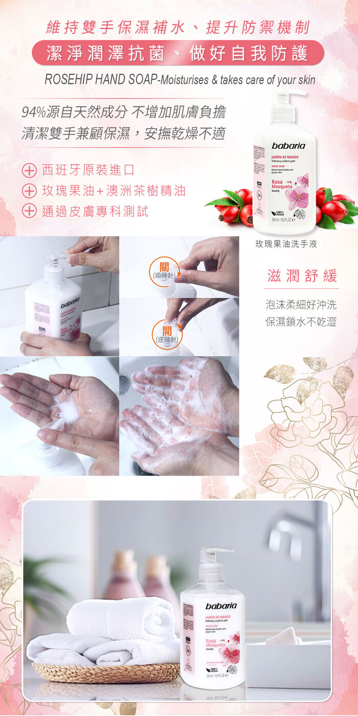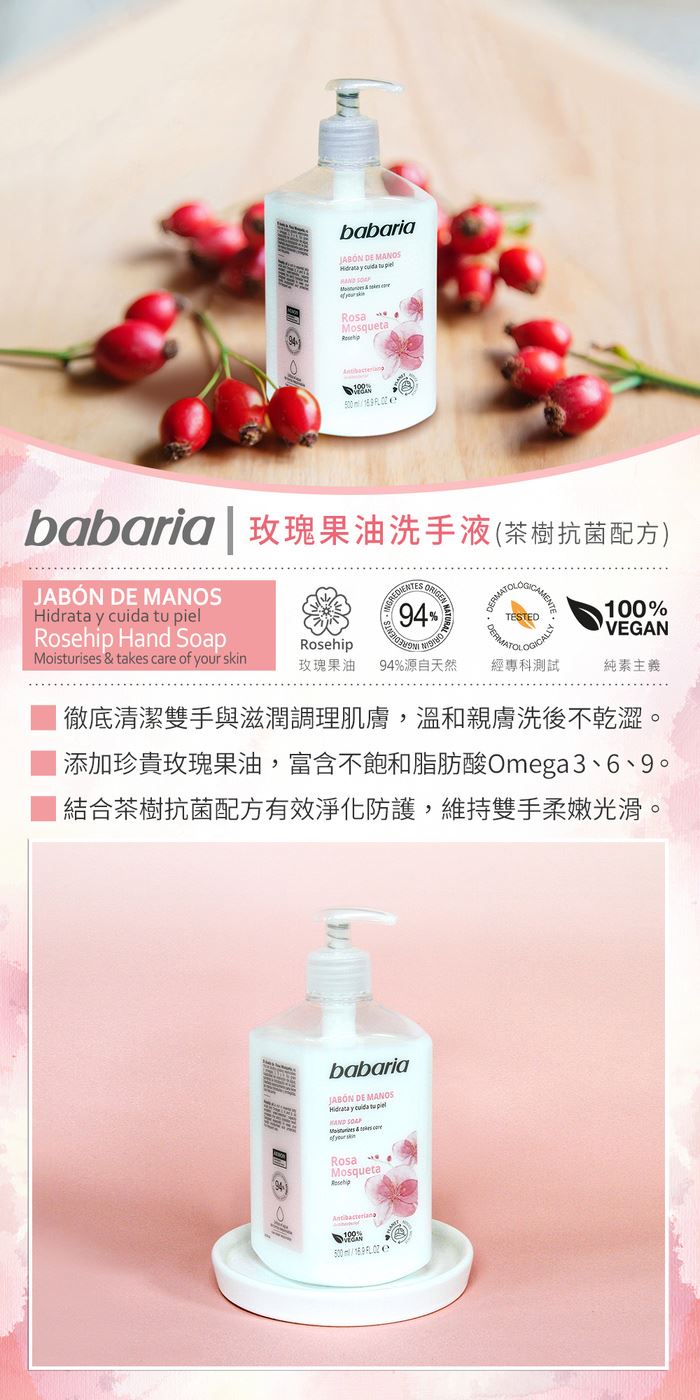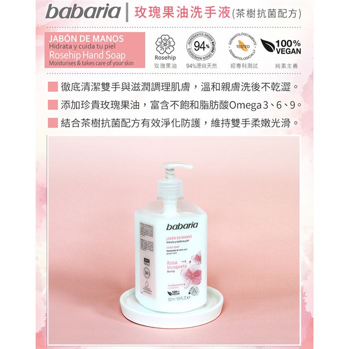babaria 玫瑰果油洗手液 500ml (茶樹抗菌配方)