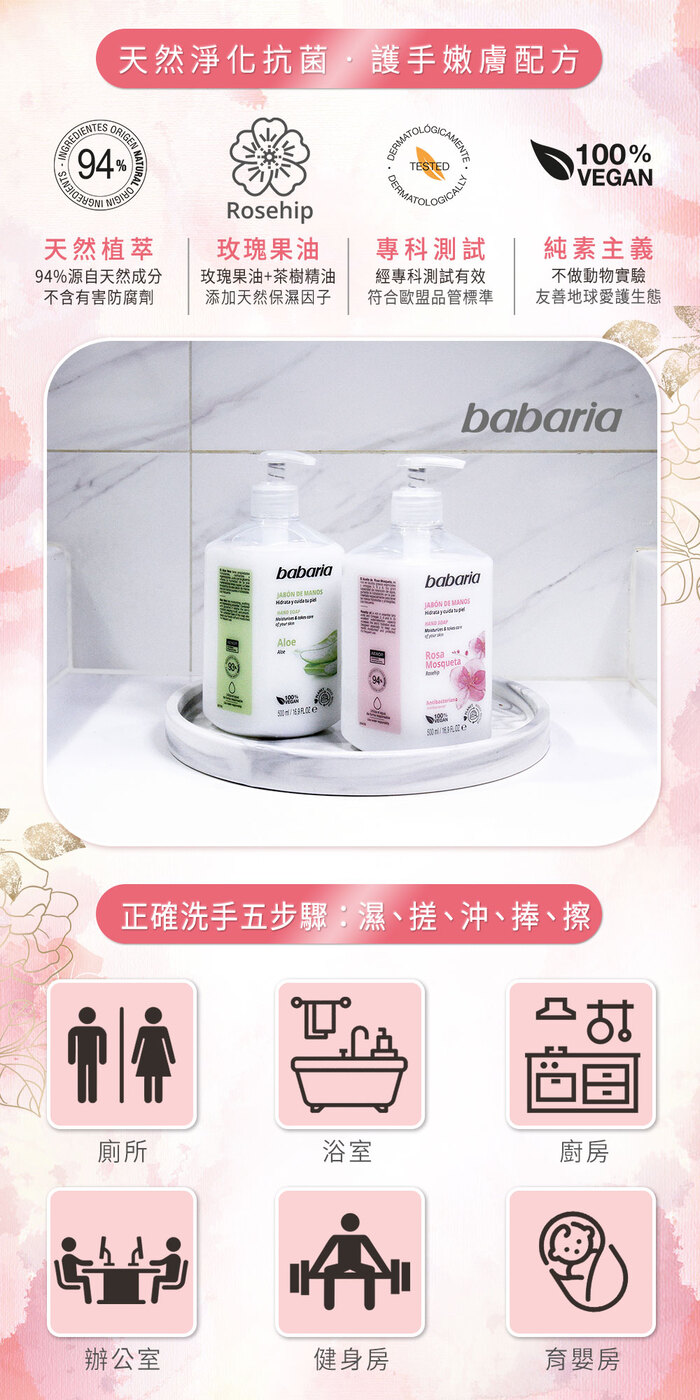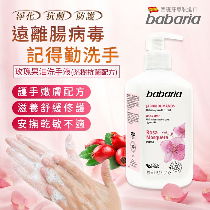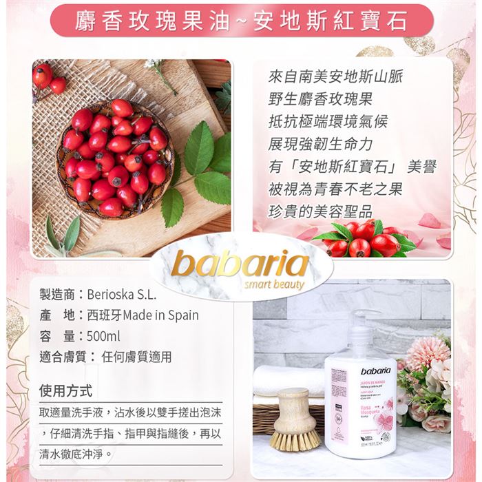| 商品名稱/包裝內容規格 | babaria 玫瑰果油洗手液 500ml x 6入 |