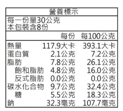 | 營養標示 | 如圖片所示 |