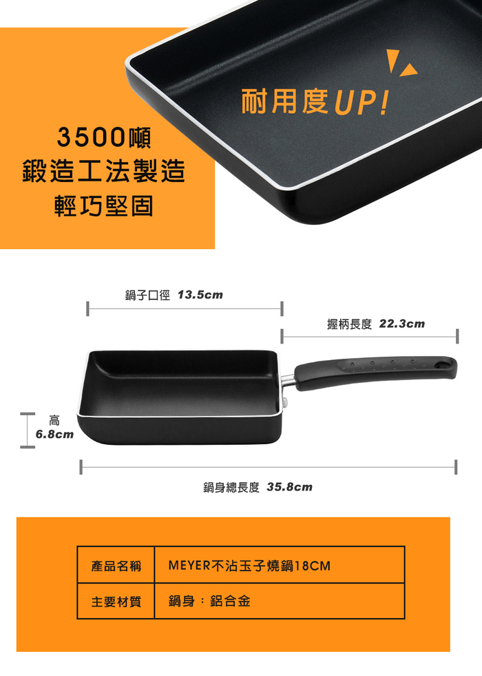 玉子燒 總長:35.8m(含把手) 鍋深:6.8cm重 0.89 kg 蛋鍋 ●鍋身高度:2.5CM |