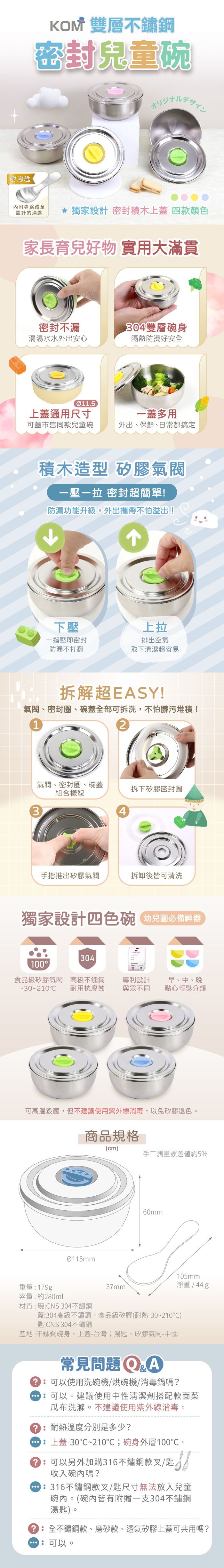 | 商品名稱 | 【KOM】積木密封防漏雙層不鏽鋼兒童隔熱碗11.5cm-1入 |
