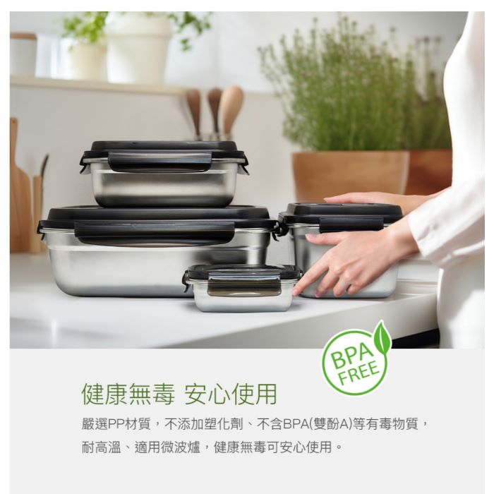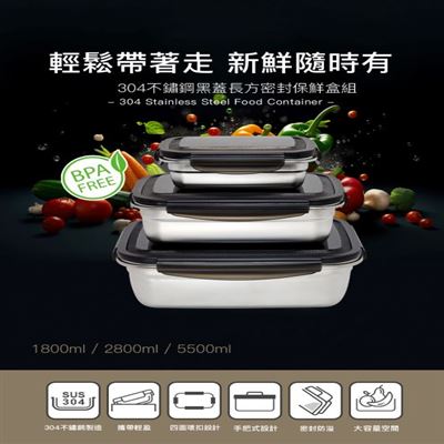 | 商品名稱 | 義大利MAMA COOK 304可微波不鏽鋼黑蓋長方密封保鮮盒組 |