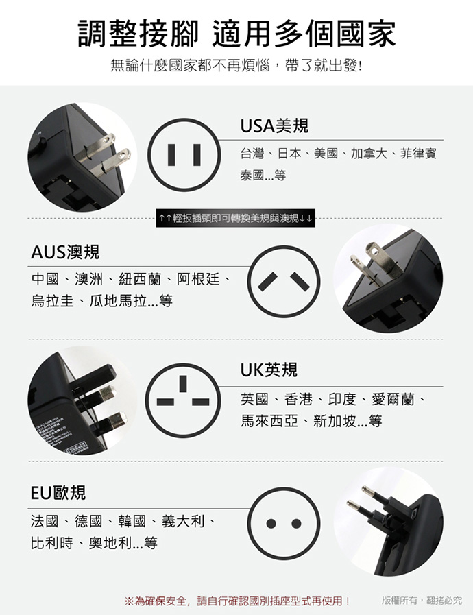 --多國插頭轉換,出國旅遊必備,充電無國界--