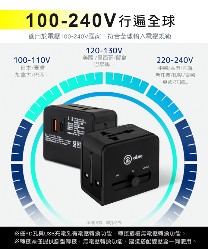 | 【商品名稱/型號】 | 【aibo】萬國旅行充電器 QC3.0+PD20W快充 |