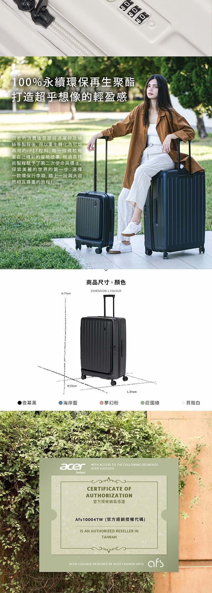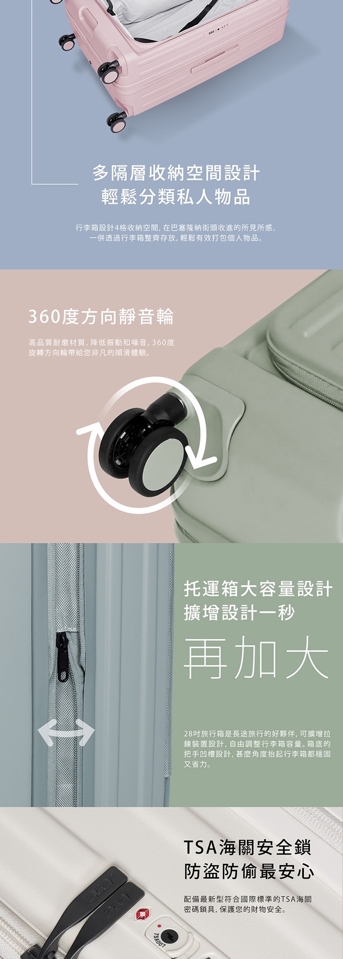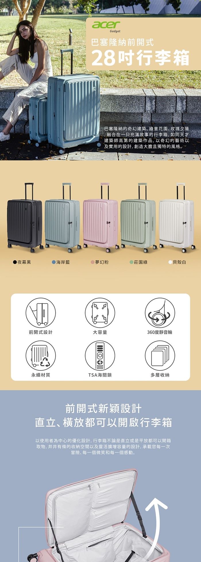 | 【商品名稱】 | 【Acer Fashion】巴塞隆納前開式行李箱28吋- 5色可選 [加贈4件禮] |