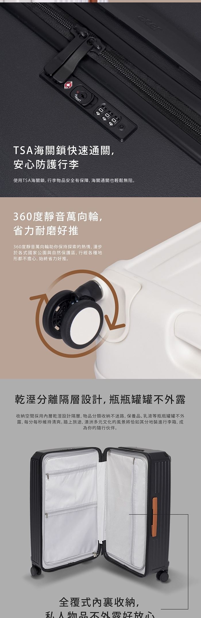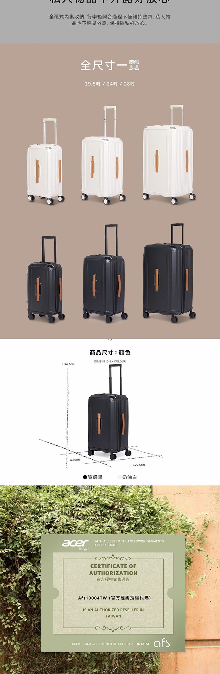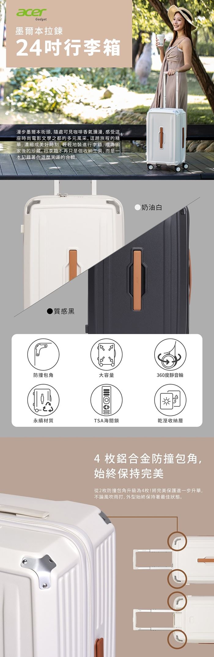 | 【商品名稱】 | 【Acer Fashion】墨爾本拉鍊行李箱24吋- 2色可選 [加贈4件禮] |