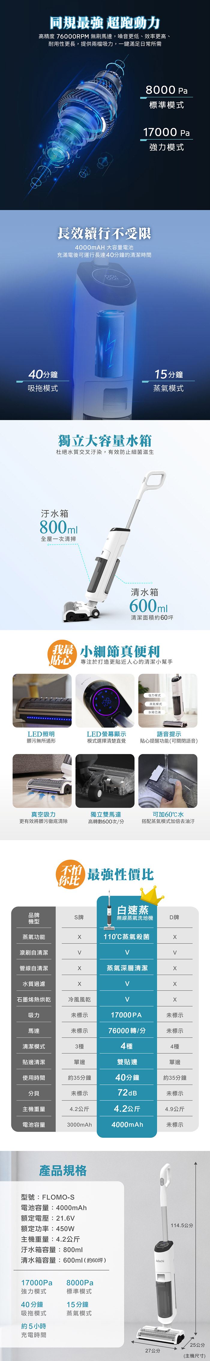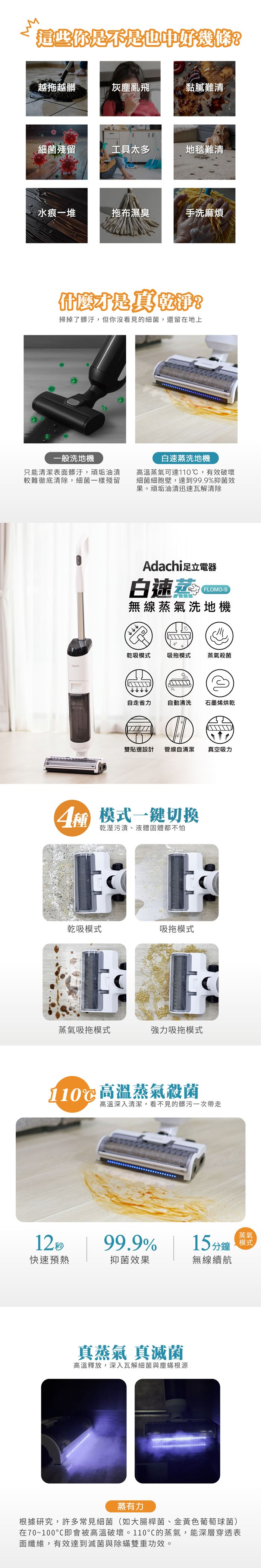 | 商品名稱 | Adachi 足立電器 白速蒸 無線蒸氣洗地機FLOMO-S |