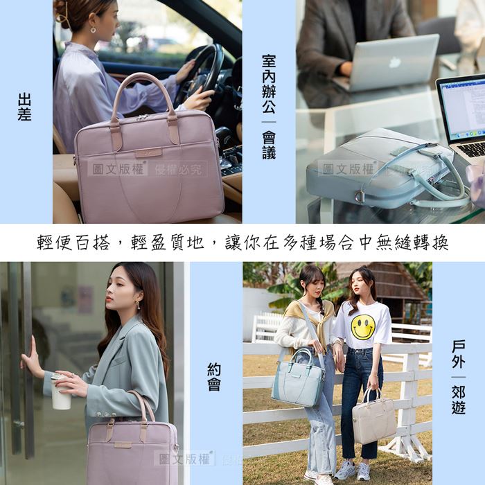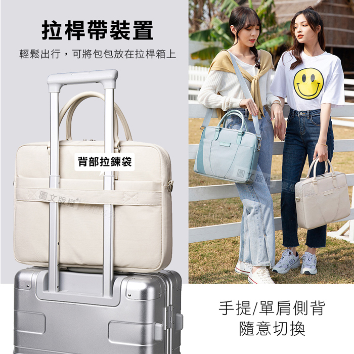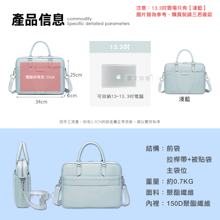 | 【商品名稱或型號】 | 【J.S.優品】職場輕熟風 防震/防潑水手提肩背筆電包13.3吋-淺藍 |