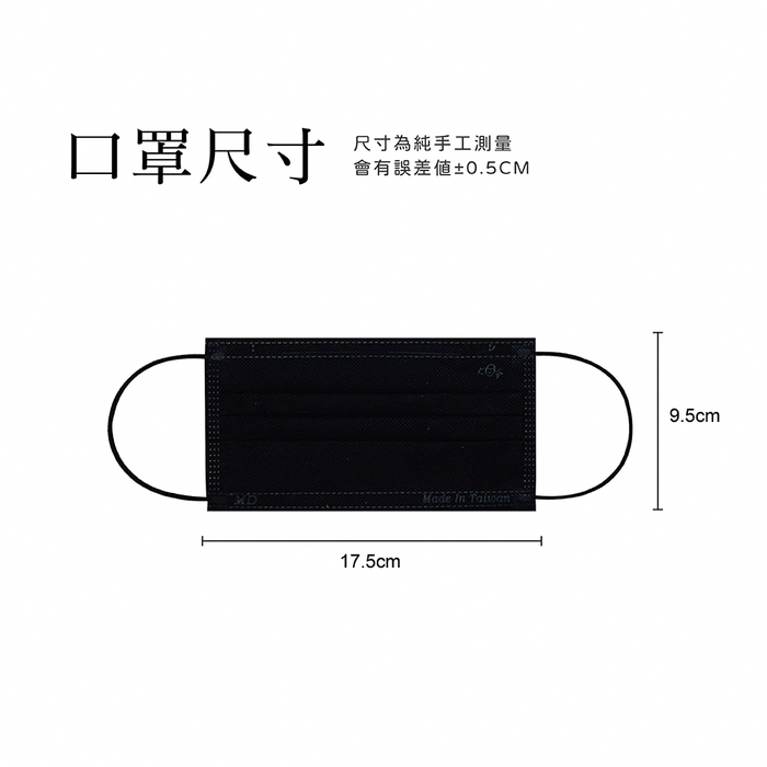 | 注意事項 | 1.如發現口罩有破損,請勿進入高細菌危險區域,並立即更換 2.使用過程如需取下口罩,請避免口罩外部碰觸口鼻導致感染 3.請保存於陰涼乾燥處,避免陽光直射、接近高溫及火源 4.本產品為拋棄式,勿重複使用,若連續配帶請八小時更換一次 |