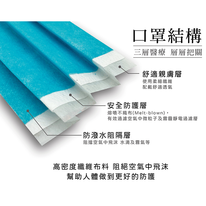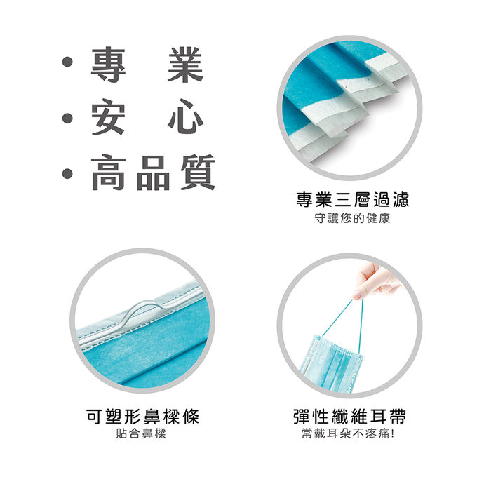 【商品材質】防潑水不織布,熔噴過濾不織布,超柔細複合纖維不織布、PE塑鋼線、彈性尼龍耳帶