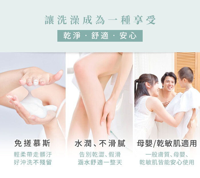 全胺基酸配方:給肌膚剛好的潔凈,洗後不乾澀、假滑