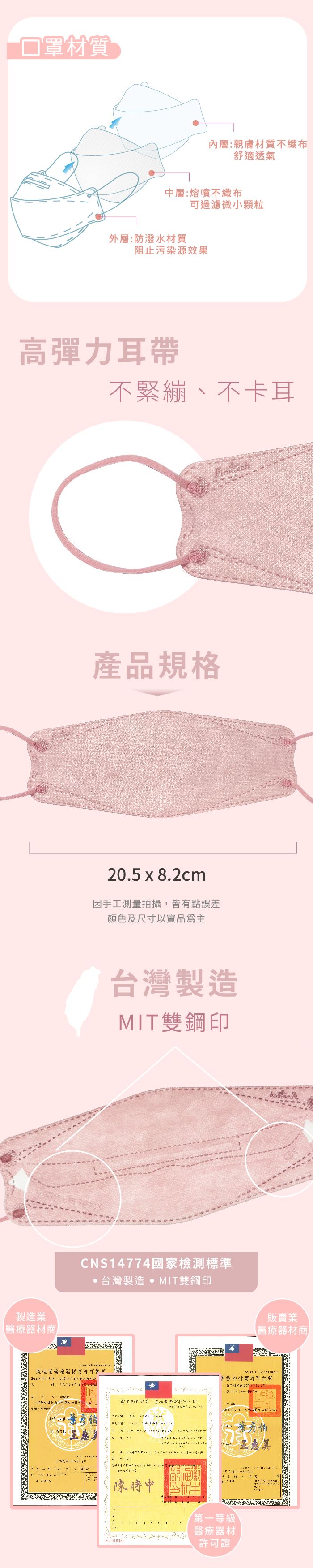 | 注意事項 | •本產品為拋棄式口罩,請勿洗滌或多次使用。 •如發現口罩有破損,請勿進入高細菌危險區域,並立即更換。 •使用過程如果出現瘙癢或疼痛等症狀,請立即停止使用。 •使用過程如需取下口罩,請避免口罩外部碰觸口鼻導致感染。 •請放置於嬰幼兒無法觸及的地方,以免發生危險。 •請保存於陰涼乾燥處,避免陽光直射、接近高溫及火源,請遠離高溫火源、潮濕處。 •本產品為拋棄式,勿重複使用,若連續配帶請八小時更換一次 •拋棄時請將口罩向外對折後,捲成圓筒狀並丟於垃圾桶。 •兒童請在成人指導下使用。 •個人衛生用品除商品本身有瑕疵外,恕不接受退換貨。 •情境商品不在販售項目中。 •鑑賞期並非試用期,若您需退換貨商品,請保持原樣貌及外包裝,如有缺件或包裝不完整之情形,則可能產生整新之費用。 •商品退換貨,請勿在原包裝上張貼或寫字。 •退換貨,請妥善保存購買憑證、發票等證明文件。 •電腦螢幕會產生色差,顏色以實際產品為主。 •請放置於陰涼乾澡處,避免陽光直射,開封後請冷藏保存並儘速食用。 •本產品不提供試用,7天「鑑賞期」非「試用期」,欲辦理退貨之商品必須是全新完整、未拆封之包裝狀態(含商品本體、贈品、原包裝袋、盒、箱、隨貨文件)。除非是商品瑕疵問題,拆封後無法辦理退貨。 |