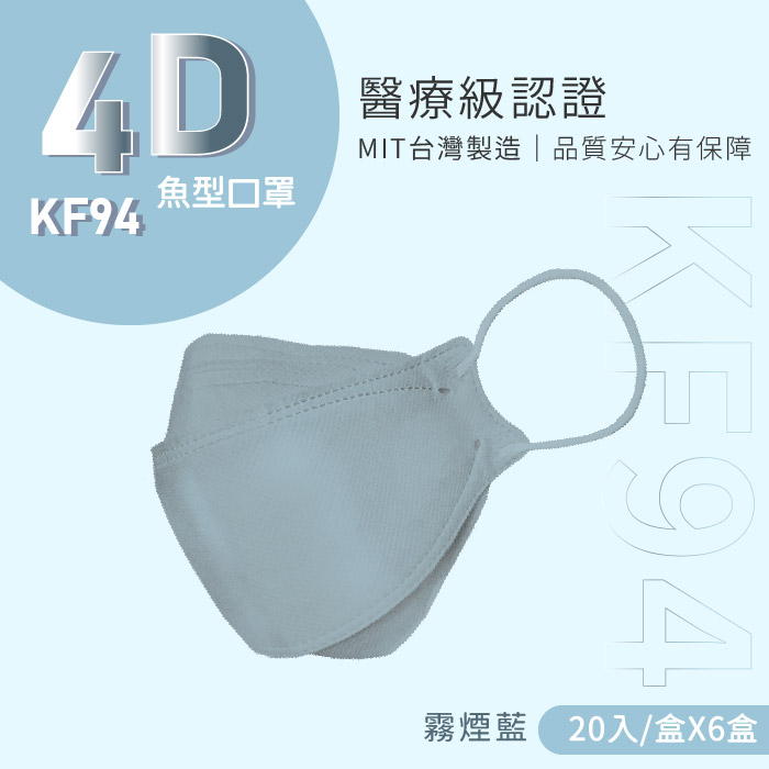 【6盒組】釩泰-成人4D立體醫用口罩(20入/盒)-霧煙藍
