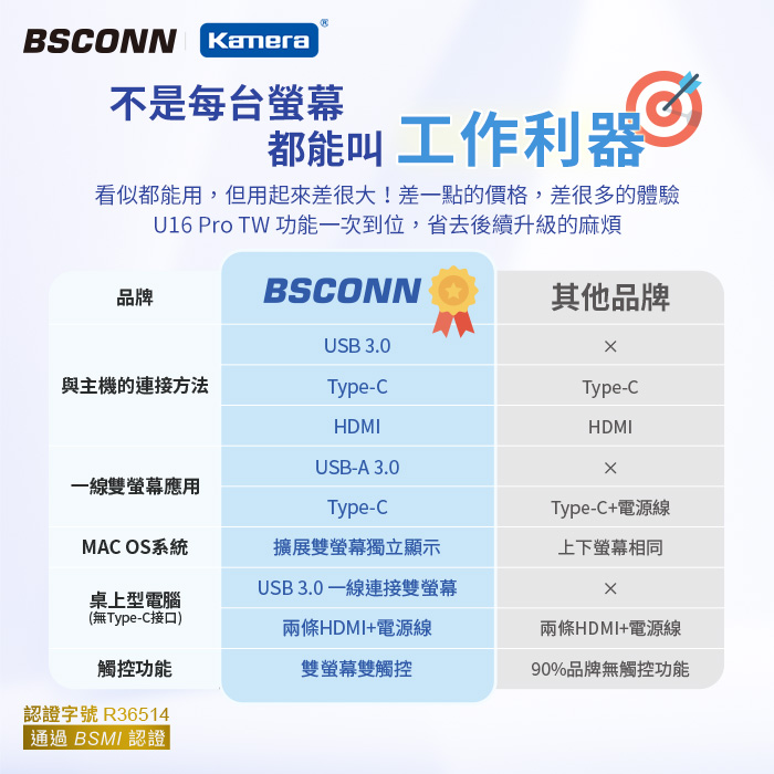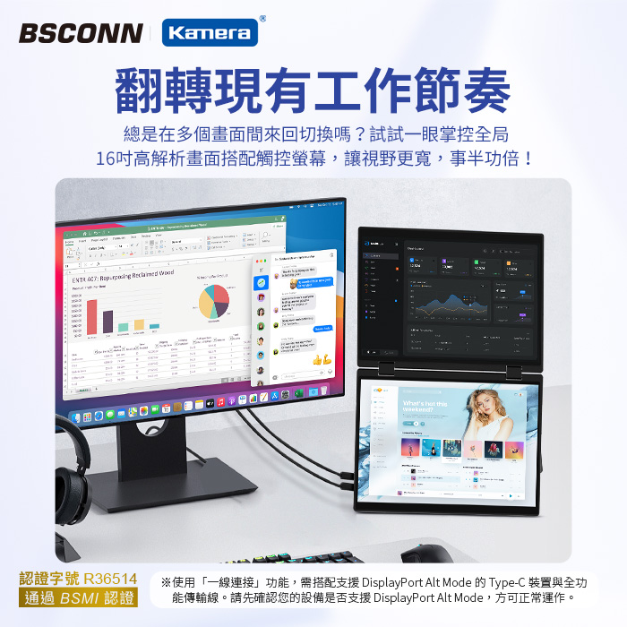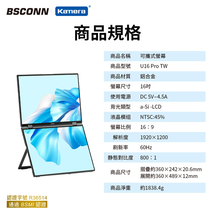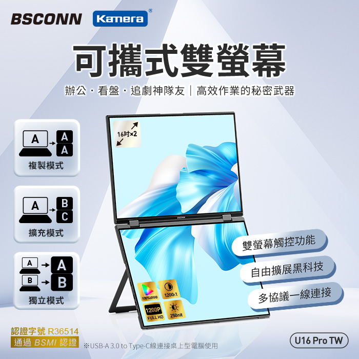 | 【商品名稱或型號】 | 【BSCONN】16吋可攜式雙螢幕(觸控版)(16 Pro TW) |