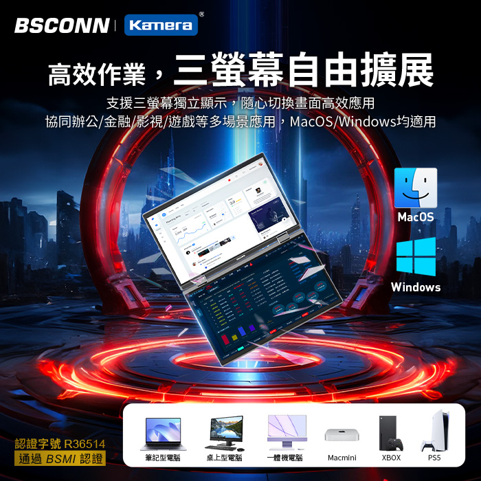 - 多介面支援,提供 USB-A 3.0、全功能 Type-C、HDMI 等介面,適用於筆電、平板、主機與手機(部分型號需支援 DP Alt 模式),靈活對應各式設備。無論是 Mac 使用者或 Windows 筆電皆可輕鬆連接使用。