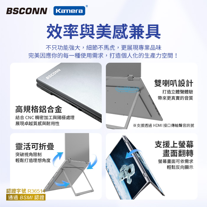 - 鋁合金機身,不僅美觀更具結構強度,質感與耐用兼備。