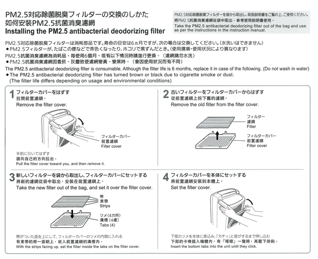*PM2.5濾網,建議使用六個月更換(不可水洗)