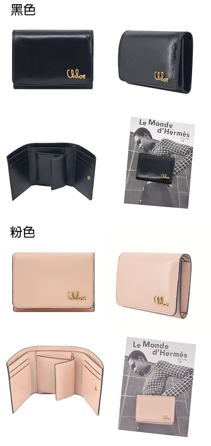 | 【商品名稱】 | 【CHLOE】Iconic亮面小牛皮三折短夾-黑色/粉色 [平輸] |
