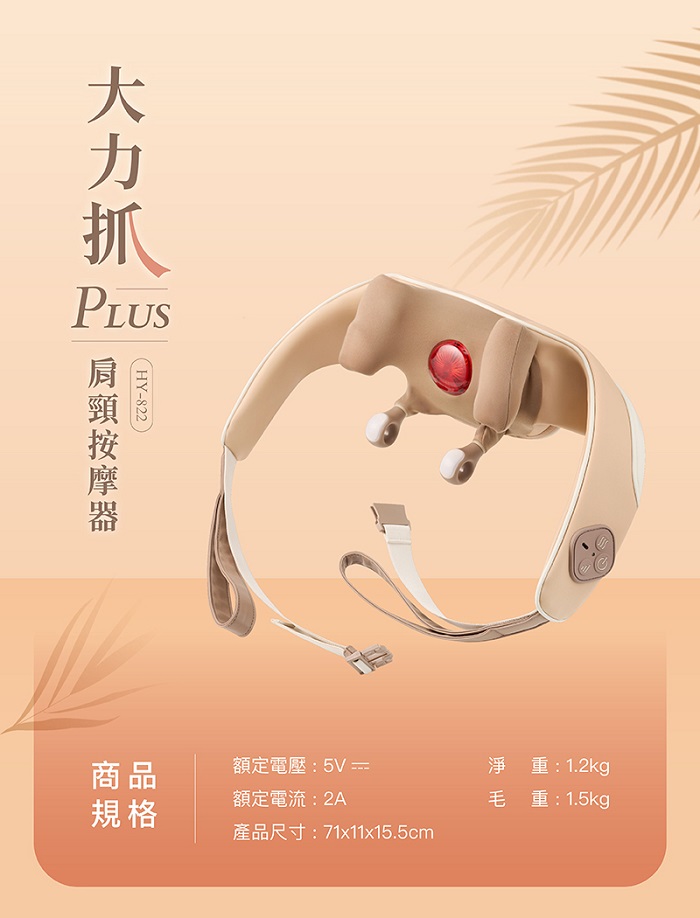 | 【商品名稱或型號】 | 【輝葉】大力抓PLUS肩頸按摩器(HY-822) |
