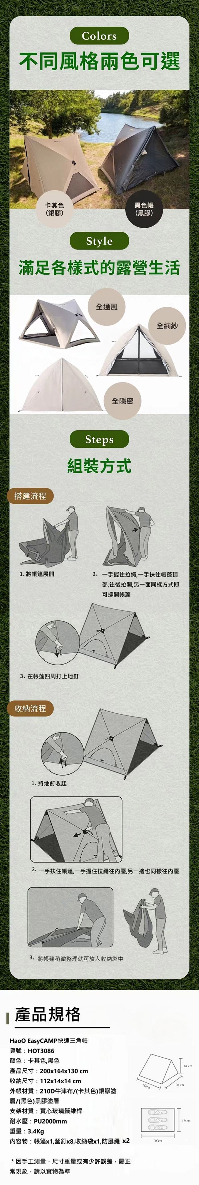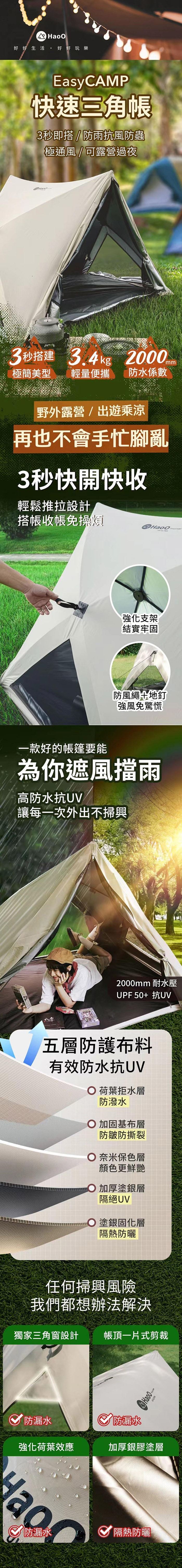 | 【商品名稱或型號】 | 【HaoO】EasyCAMP 快速三角帳 - 2色可選 |