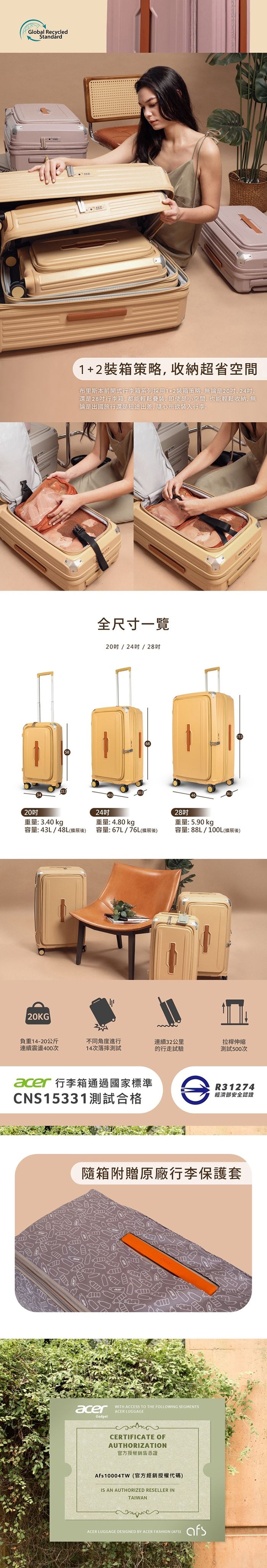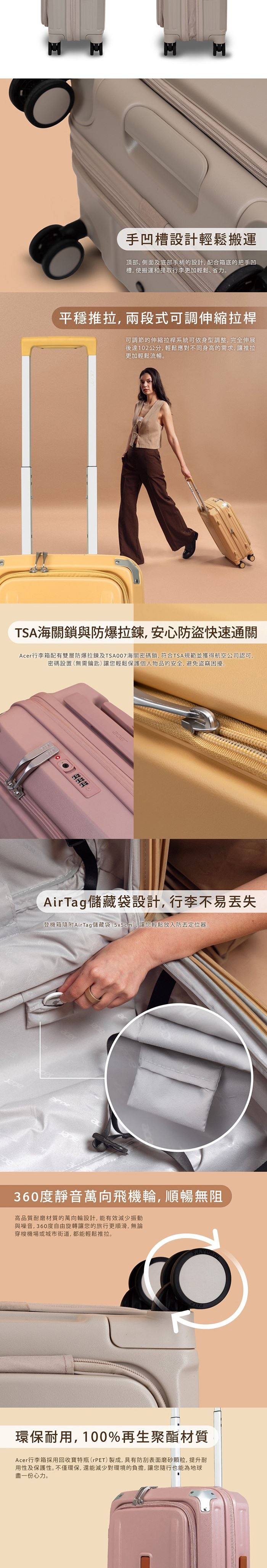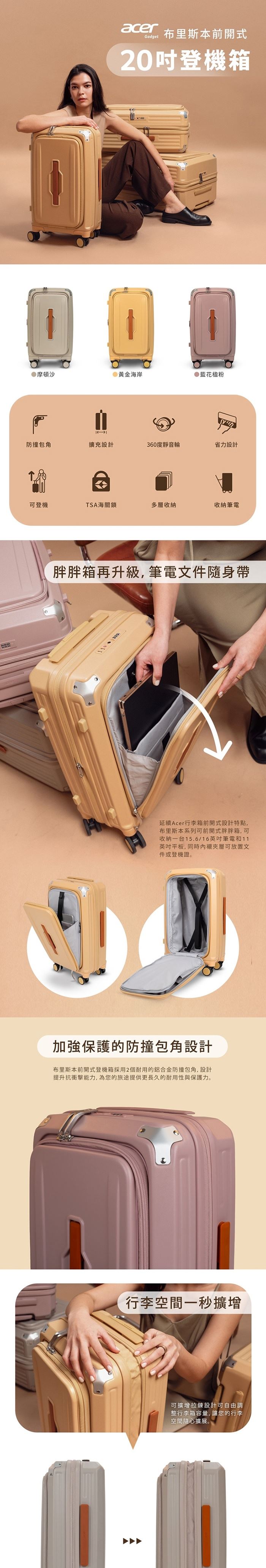 | 【商品名稱】 | 【Acer Fashion】布里斯本前開式登機箱20吋 - 3色選 [加贈4件禮] |