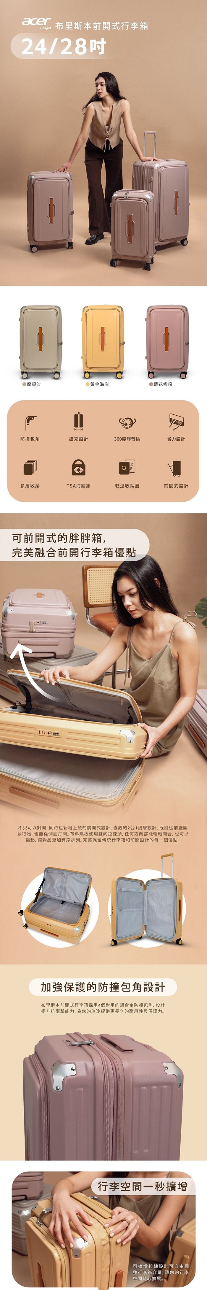| 【商品名稱】 | 【Acer Fashion】布里斯本前開式行李箱2件組(24+28吋) - 3色可選 [加贈4件禮] |