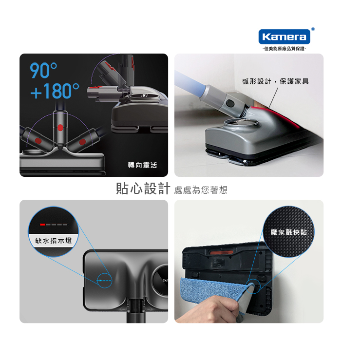 - 邊拖邊吸,吸塵兼具擦地二合一的功能