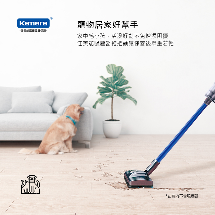- 使用完成後只須清洗拖布,再搭配吸塵器掛架收納