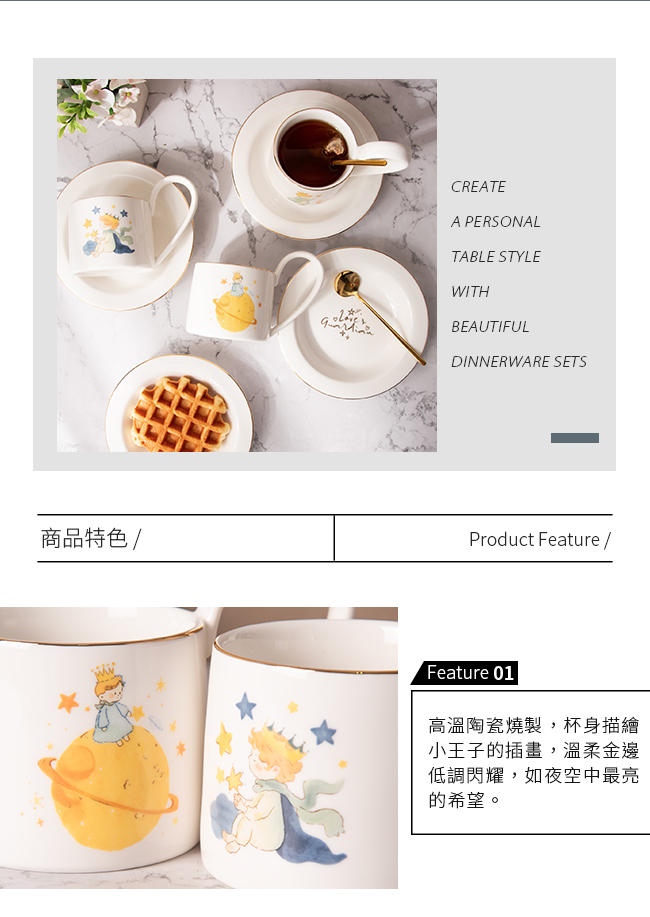 | 商品名稱 | 【Homely Zakka】可愛原創小王子陶瓷咖啡杯碟禮盒組270ml_2款一組 |