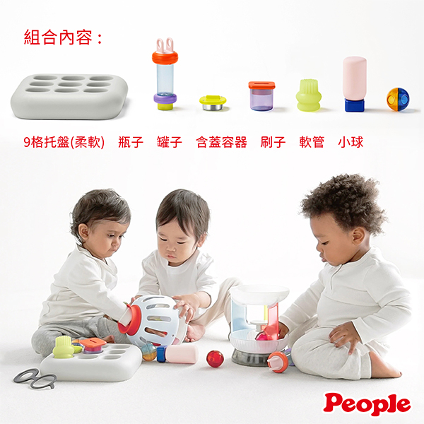 根據1歲孩子對日用品的好奇心行為,設計出讓他們想觸摸的大小、重量與形狀,充分激發他們的探索本能。