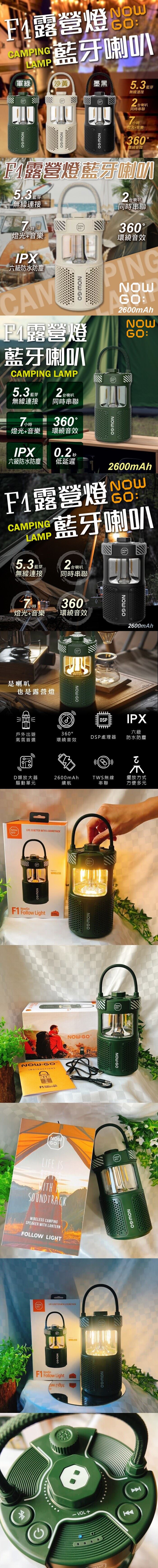 【NOWGO】F1藍牙喇叭×露營萬用燈1入